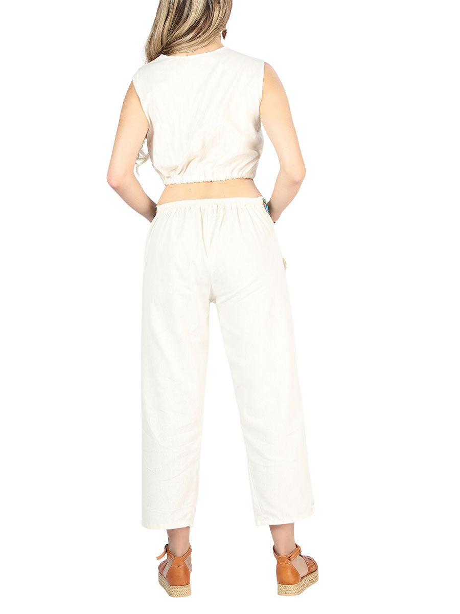 Conjunto Bordado Artesanal 100% Algodón Beige 604049